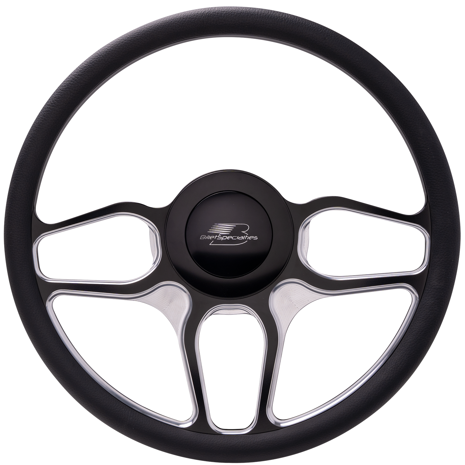 Black powder-coated face and outer rim with a raw machine finish windows and recess. The back of the wheel is black powder-coated.