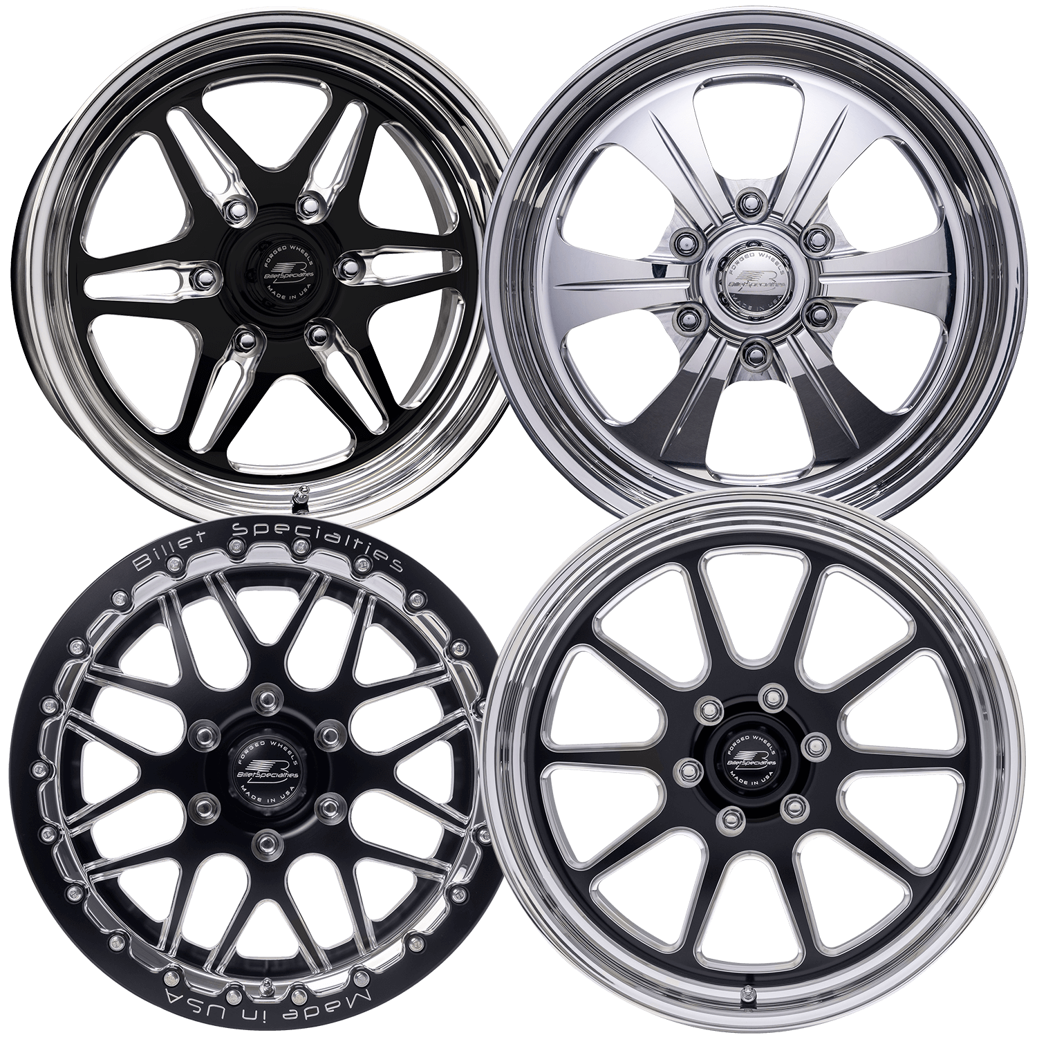 TRADITIONAL CONVENTIONAL STEPPED RIMS, EXPOSED LUGS AND A SIMPLE CAP THAT WILL COMPLEMENT YOUR CAR WITH THE QUALITY IT DESERVES. YOUR CLASSIC IS YOUR PRIDE AND JOY AS WELL AS A REFLECTION OF YOUR PERSONALITY, FINISH IT OFF WITH A SET OF QUALITY AMERICAN MUSCLE COLLECTION WHEELS. THE AMERICAN MUSCLE COLLECTION WHEELS ARE PRECISION MACHINED FROM FORGED 6061-T6 ALUMINUM CENTERS AND THEN MATED TO A SPUN 6061 ONE-PIECE CONVENTIONAL LIP BARREL.